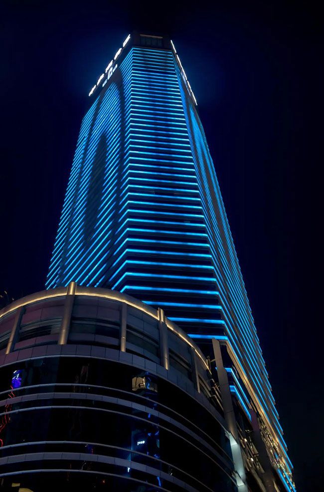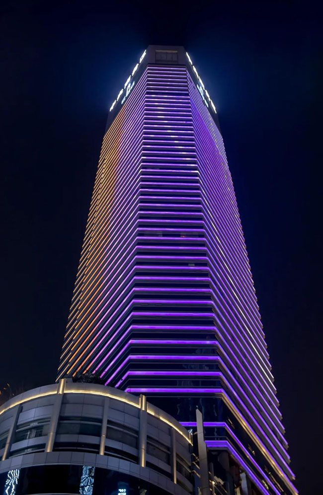 According to the shape of the building, RGBW 4-in-1 contour lights and wall washer lights are used to outline the building, avoiding light pollution of high-rise buildings and achieving visual enjoyment through rigorous control of color temperature and brightness.