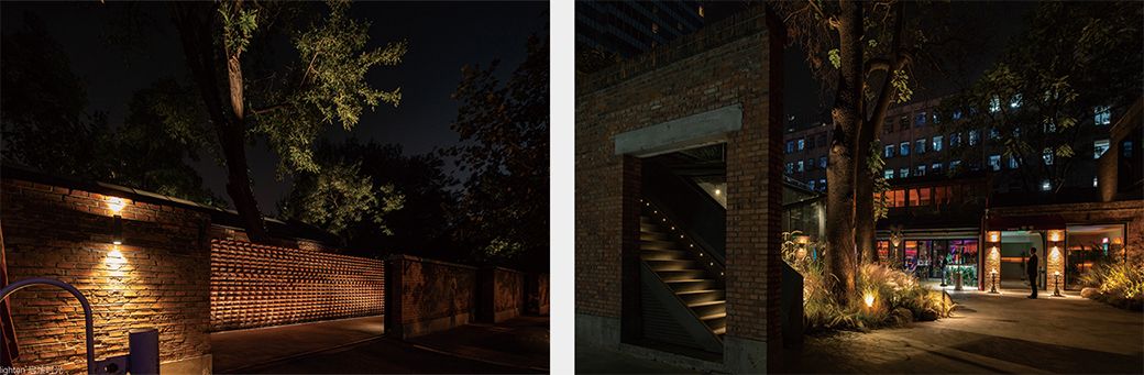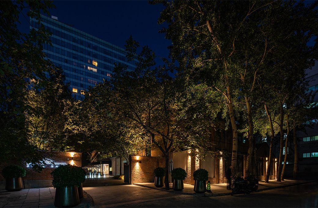 店内根据自身风格打造灯光环境,以柔和的灯光突出情调,同时灯具的位置与门窗保持足够的距离,弱化室内光对户外的影响。 红砖古树、小院露台,这座装载着城市记忆的院子,在光影中散发出沉稳静谧的魅力,成为隐于闹市中的一处别致院落空间。