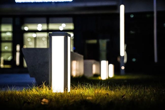 路灯外观汲取良渚玉琮的线条作为设计灵感,造型简洁雅致,四面C型卡槽结构,便于设备拓展安装,内嵌景观灯光氛围加持,既能衬托院区现代温馨而又不失当地文化特色。